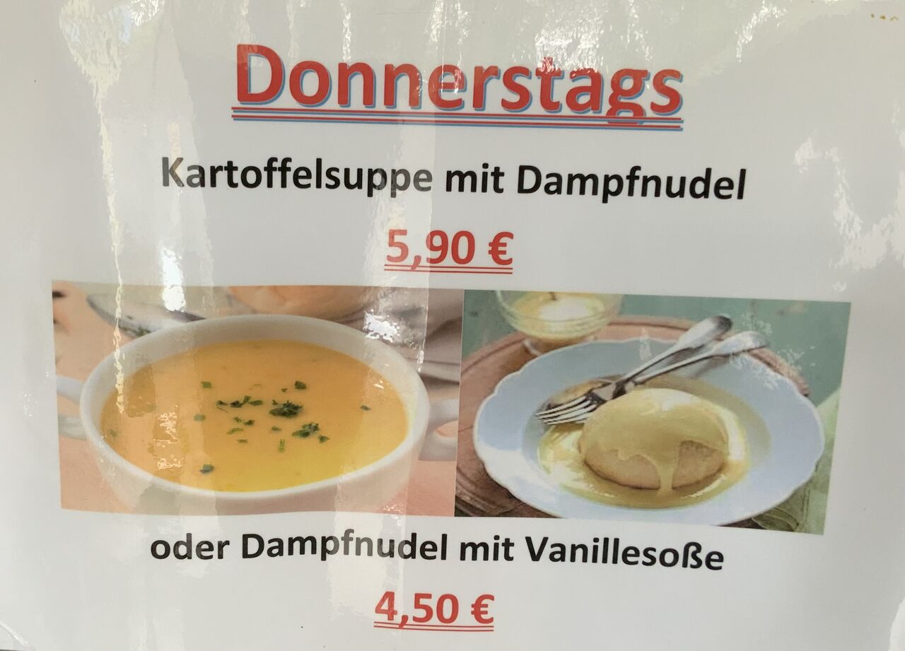 Jeden Donnerstag gibt es Oppauer Dampfnudeln mit Kartoffelsuppe oder Vanillesoße.